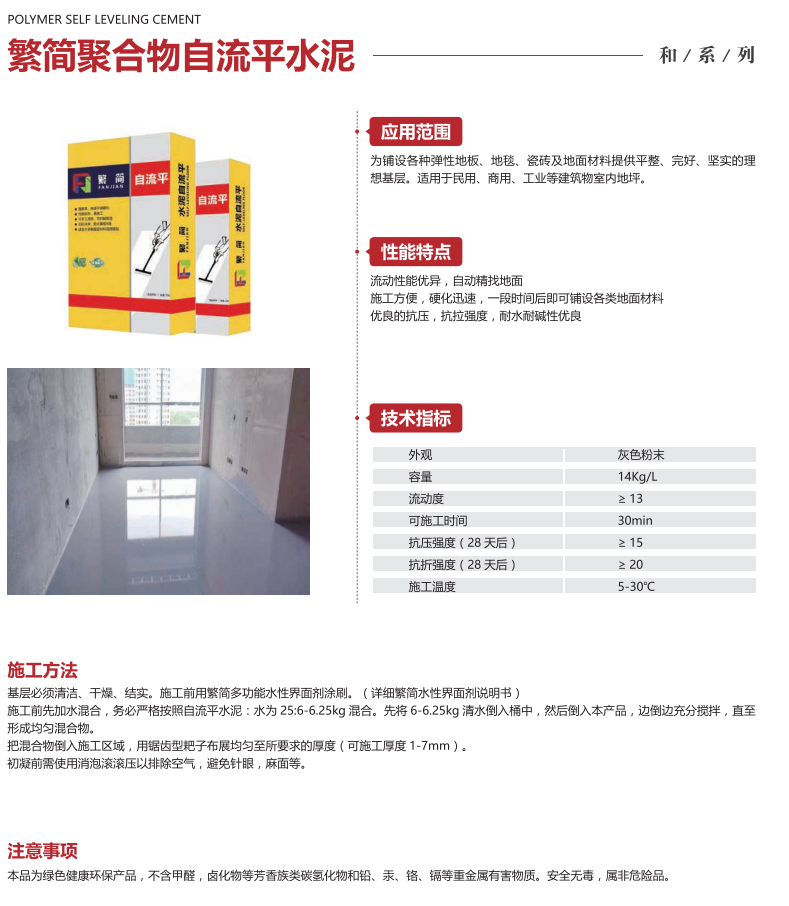 為鋪設各種彈性地板、地毯、瓷磚及地面材料提供平整、完好、實的理想基層。適用于民用、商用、工業等建筑物室內地坪。